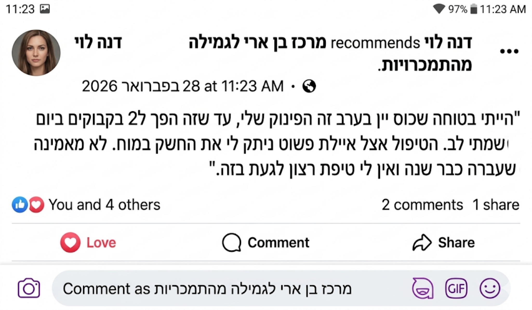 מתוך דף הפייסבוק של "מרכז בן ארי לגמילה מהתמכרויות"
