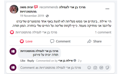 מתוך דף הפייסבוק של "מרכז בן ארי לגמילה מהתמכרויות"