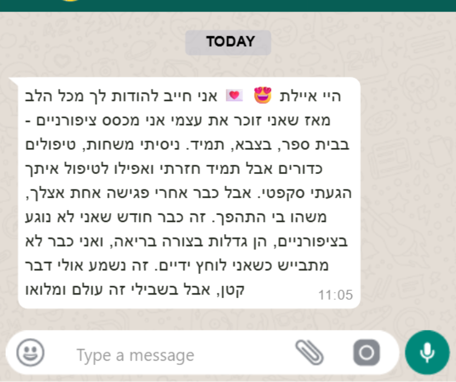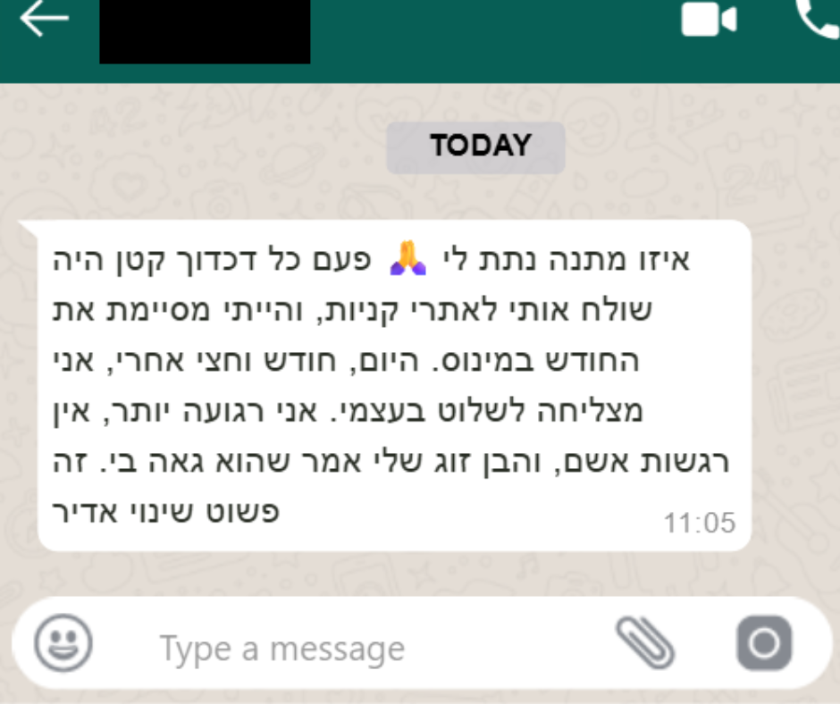 שמחה לבשר שהגמילה ב “שיטת בן ארי”, לא מצריכה כוח רצון כלל וכפי שאני טוענת: