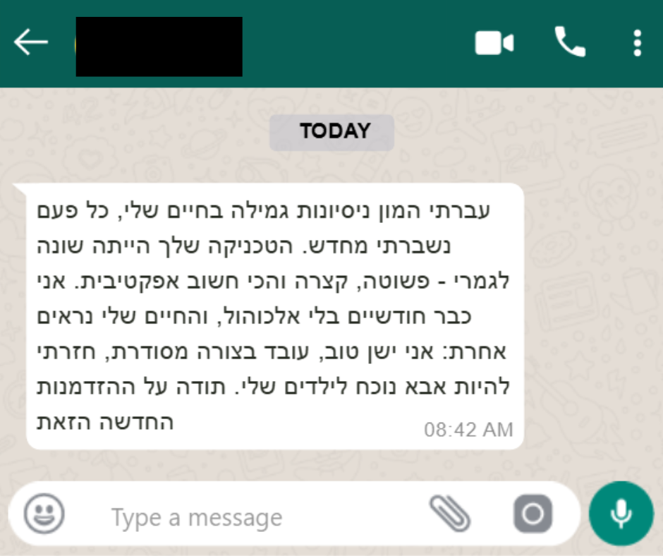 המחירים של התמכרות לאלכוהול הם גבוהים והטיפול אותו אני מציעה, שהוא קצר ומדוייק, מהווה אלטרנטיבה מצויינת למרכז גמילה. לא לכל אחד יש את הזמן או את הכסף להיכנס למוסד לכמה שבועות לפחות, והאמת?