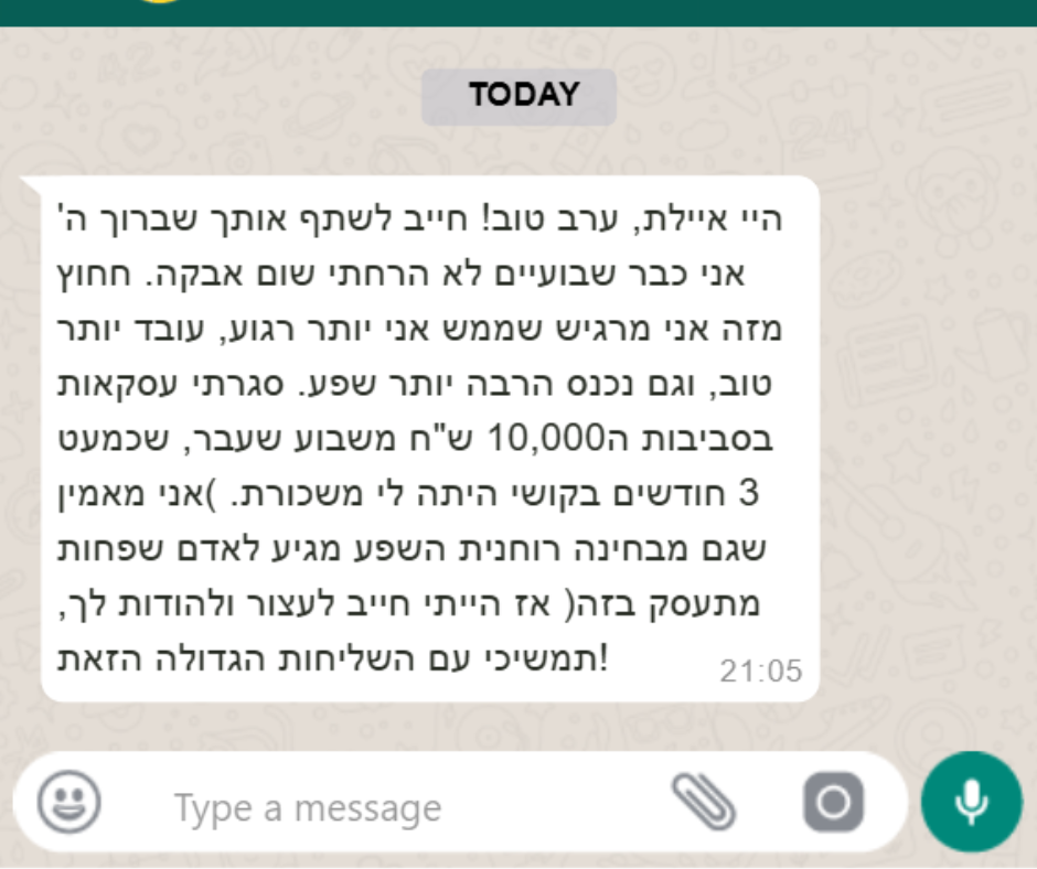 אבל מאחר ונפש האדם שונה מאחד לשני, כחלק מהתוכנית יש לכם תמיכה וליווי ממני במשך שנה, עד שהדבר הזה מאחוריכם.